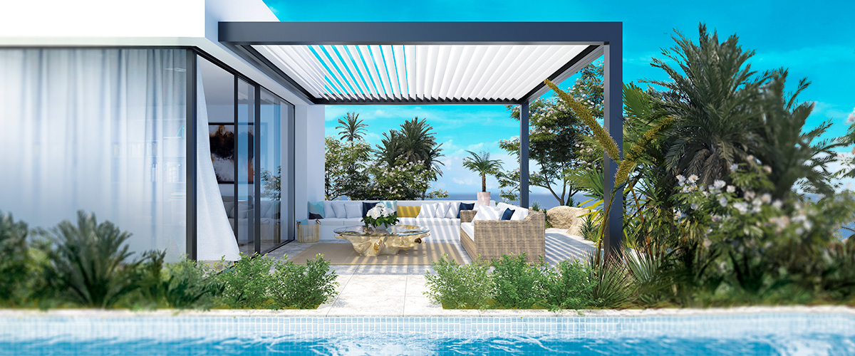 Nuestra pérgola más avanzada. Genera espacios habitables en cualquier estación del año. El sol o la lluvia ya no son inconvenientes.