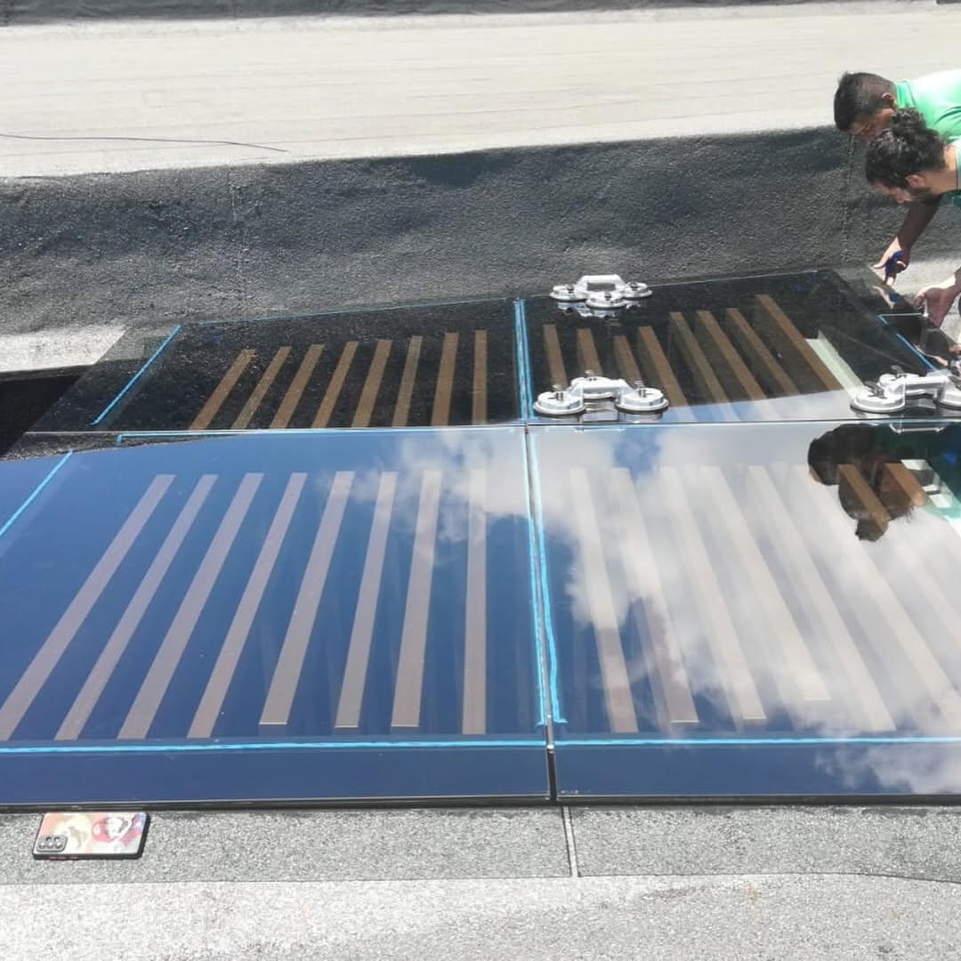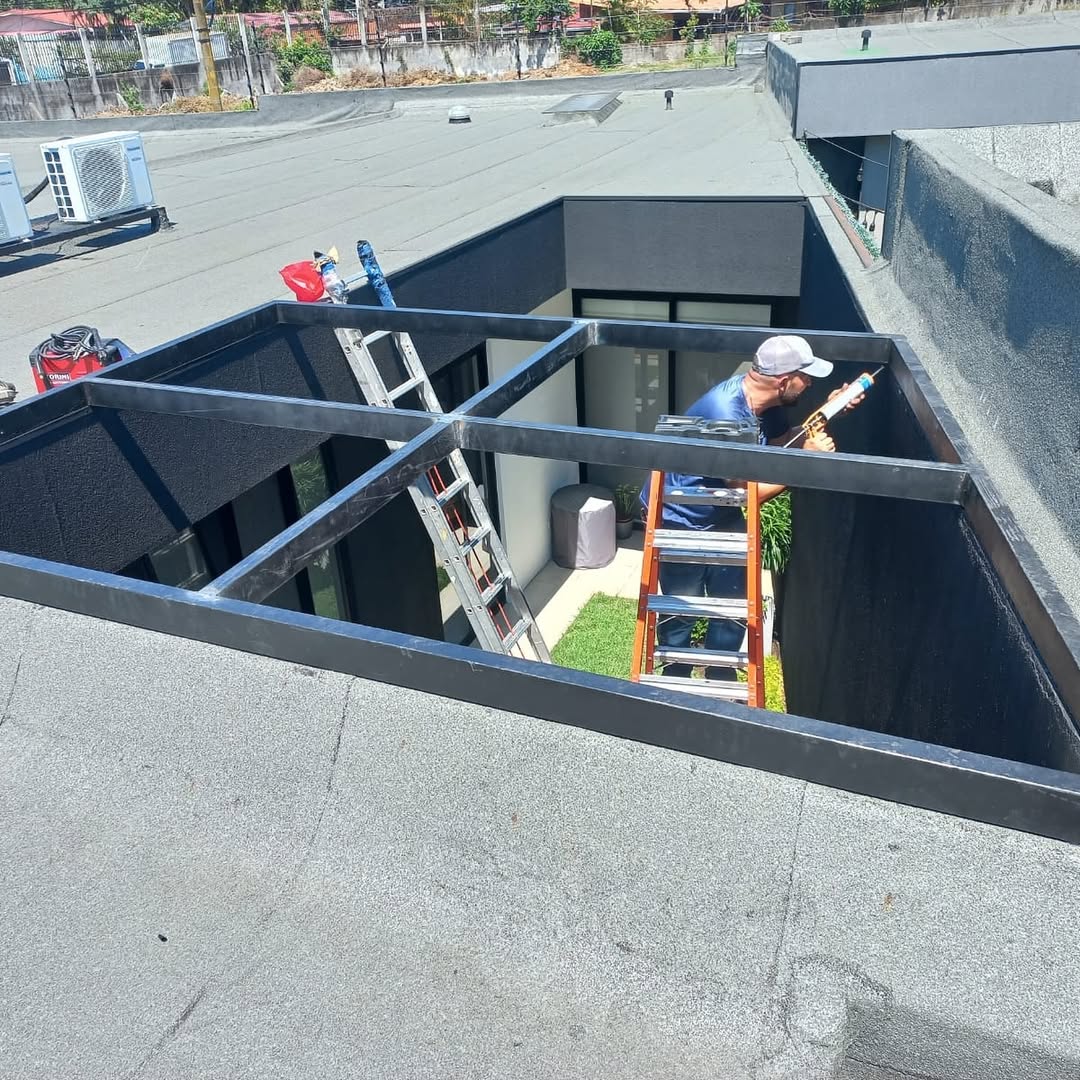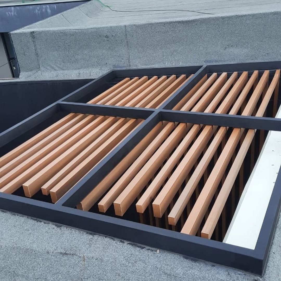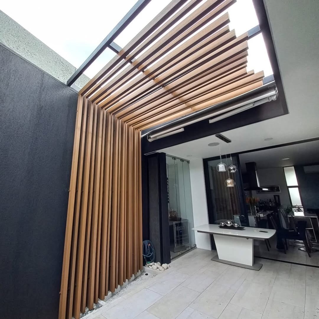 ⛩️ Esta pérgola fue diseñada especialmente a pedido del cliente. Fue armada de vidrios con control solar, estructura de hierro y louvers de PVC REHAU