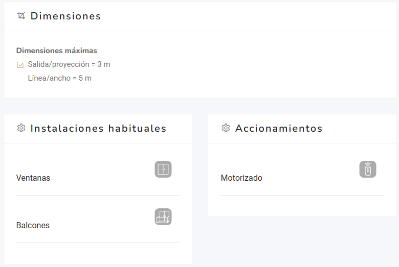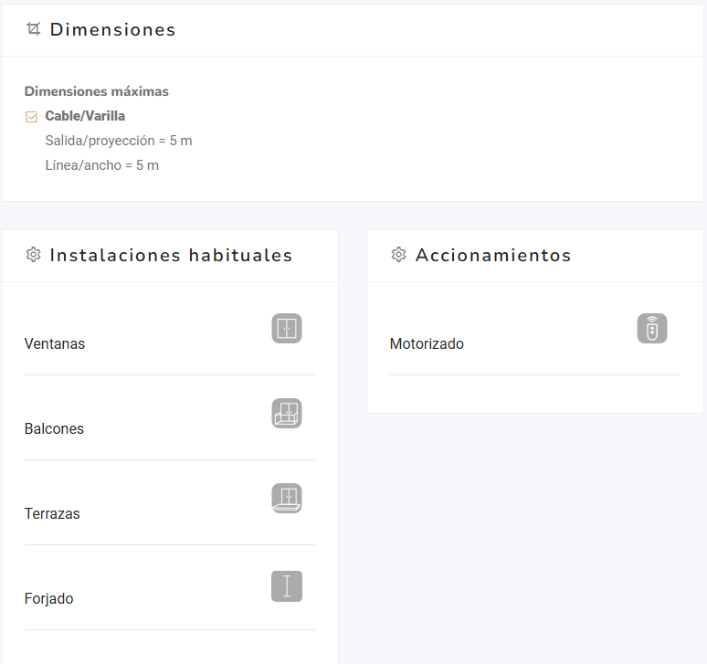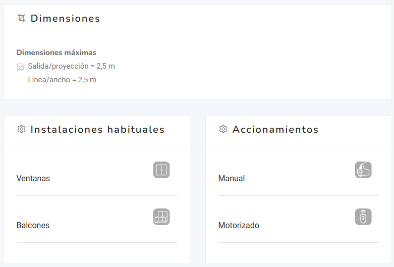 Con una protección máxima y un ancho máximo de 2,5 metros. Su sistema facilita la instalación tanto en fachadas como en techos.