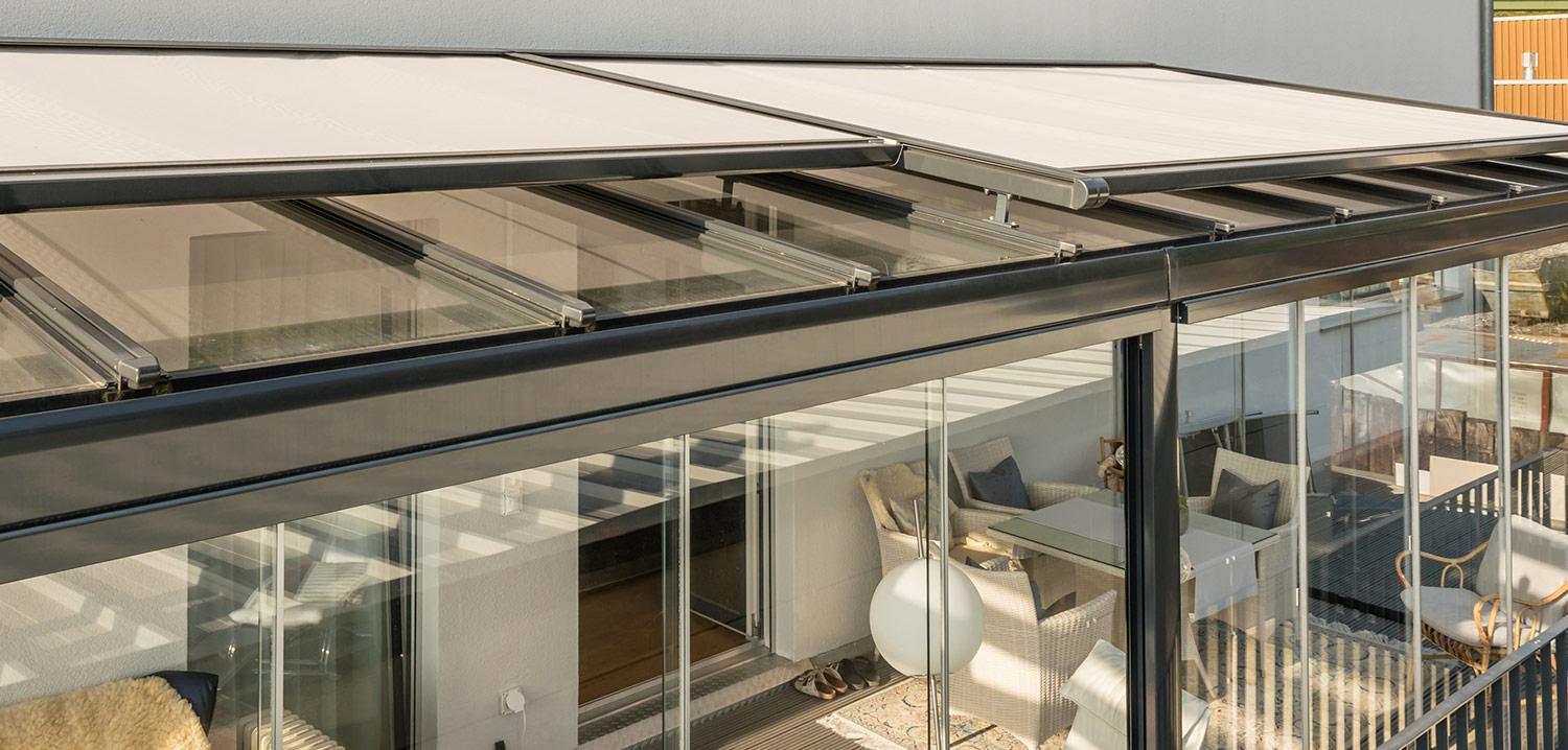 Esto convierte la terraza en un verdadero ambiente intermedio entre interior y exterior, utilizable en cualquier estación del año.